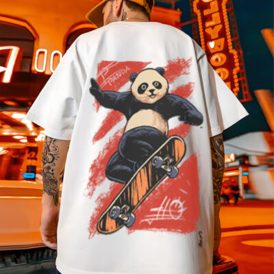 Panda Printed Oversize Tshirt, White Graphic Oversize T-Shirt